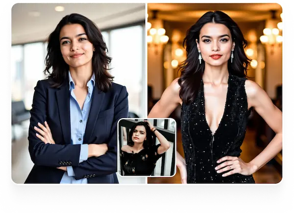 Our AI detects your facial features with deep learning models, applies realistic lighting, backgrounds, and outfits, while keeping your natural look. Everything is processed in the cloud — no manual editing needed.
